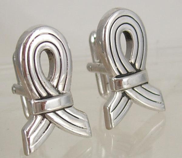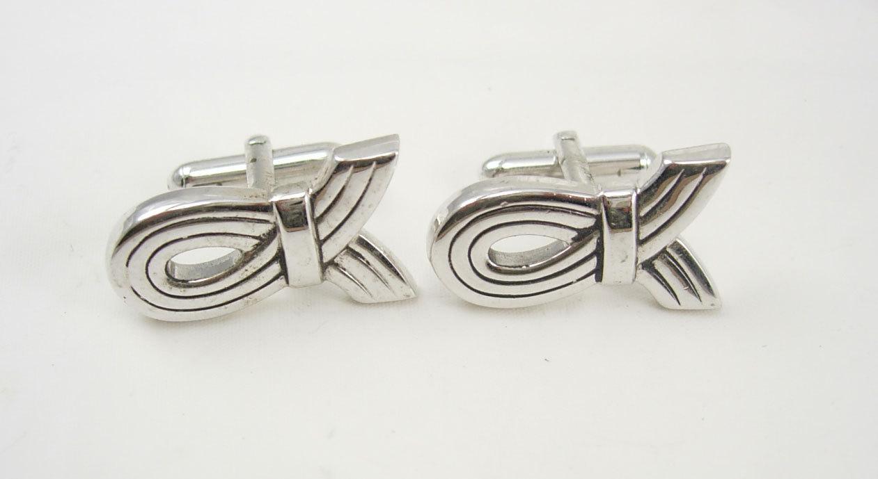 Vintage Art Deco Cufflinks Bows Ribbon Silver Birthday Gift Wedding Groom groomsman Business French cuff links designer Marked Swank
