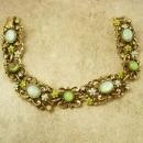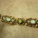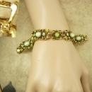 Vintage ART Enamel Bracelet Green moonstone Rhinestones enamel flowers