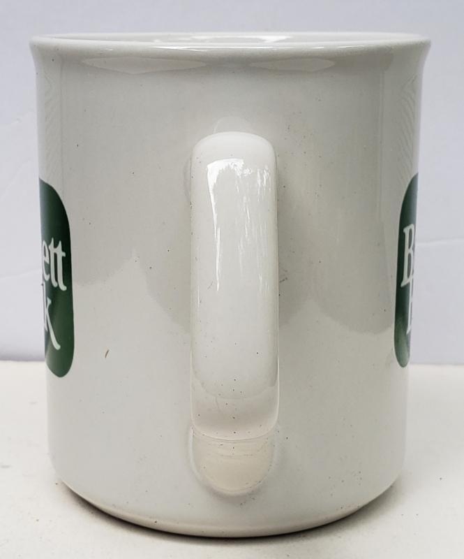 Now defunct Barnett Bank advertising ceramic mug with green logo on front and back. Bank was bought-out in 1998; this piece is from the 1980s. Measures 3.75". Nice condition with no chips or cracks. Inglenook Antiques...Established 1989.