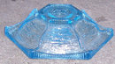 Vintage Blue Glass Candle Holder. Rough Rustic Surface. Candle Holder is 6" across and 2" high. Very good condition.