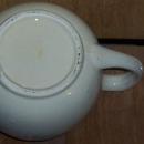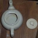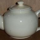 Vintage Cream Colored Pottery Tea Pot. No Mark on Bottom. Teapot is 5" high and 9" across. Good condition, glaze does have some crazing, some wear along bottom, Small chip at spout.