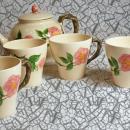 Vintage Franciscan Pink Desert Rose Teapot and 4 cups, Made In England. The condition is excellent on all of them.