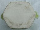 Vintage Green Pottery Vase with White Splatter Spots. Vase is 6" High, 3" across and 2 1/2" deep. Very good condition.
