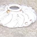 Vintage Japan Gold and White Pottery Single Candleholder With Leaf and Berry Design. Holder is 3 1/4" across. Marked Japan on bottom. Good condition, Gold Does have wear.