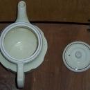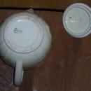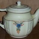 Vintage Large Coffee Pot with Blue Deco Flowers and Lid. Marked on Bottom. Coffee Pot is 7" high and 10" across. Good condition, glaze does have some crazing.