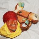 Vintage "Lords of the Desert" Bossons chalkware character wall art ©️1962 Bossons England, produced 1963 to 1987, sculpted by Fred Wright. Bossons heads are collected for their unique expressions and the craftsmanship of the mid-century. Made in England, this hand-painted piece of wall art features a sheik with his Arabian horse, showing remarkable realistic detail, finished in eye-catching vibrant colors. The detail and craftsmanship are incredible. It has a metal built-in hanger.