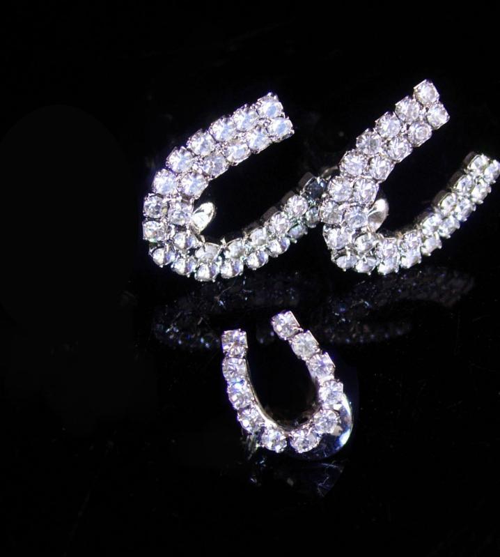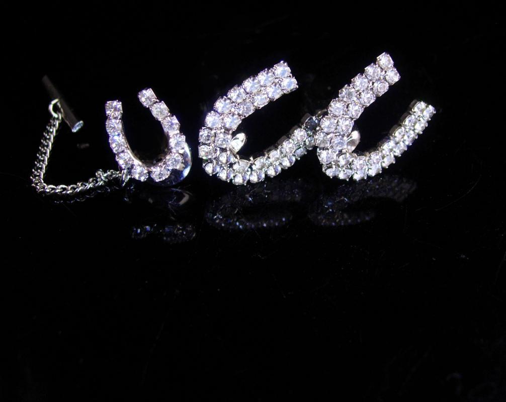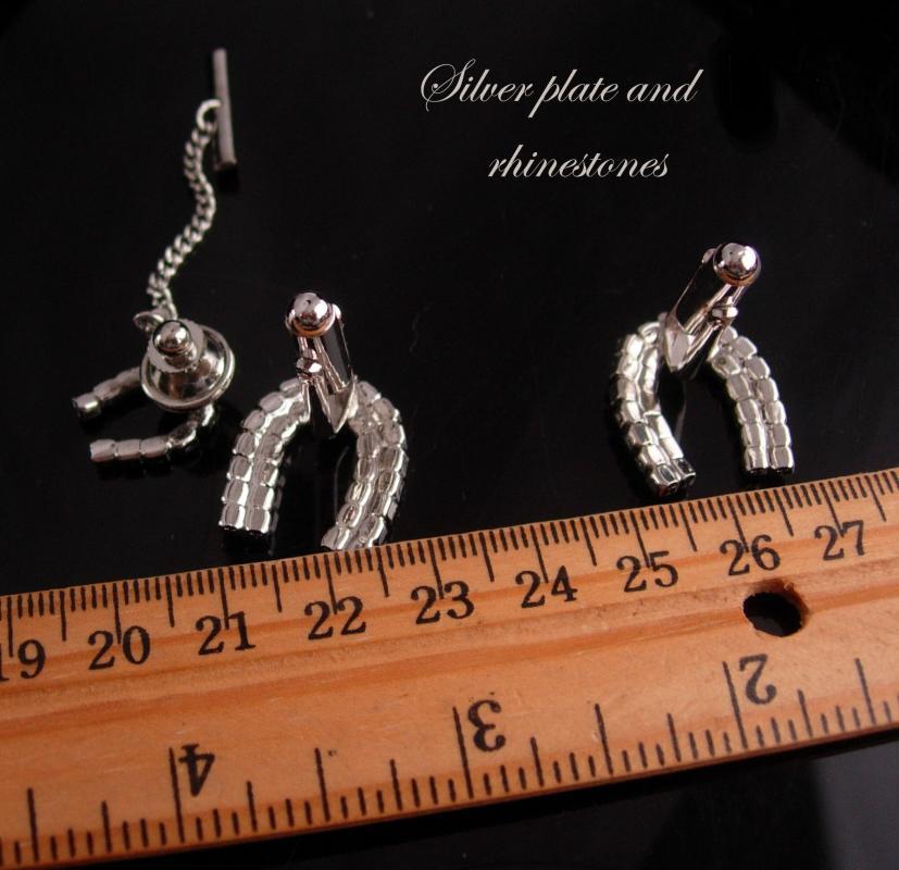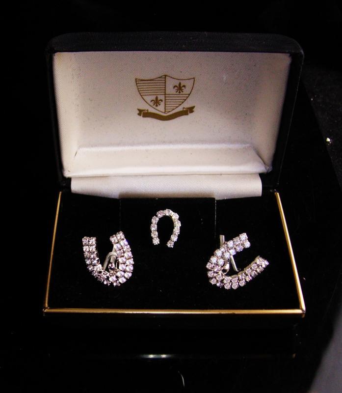 Vintage Good Luck Cufflinks - rhinestone horseshoes - silver tie tack - wedding cufflinks - original box