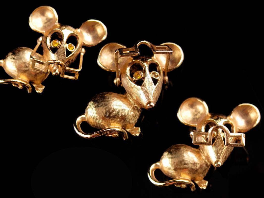 Vintage Mechanical Mouse Brooch / moveable eyeglasses - Cravat holder - Vintage Lapel Pin eyeglasses - optometrist gift - binocles-ciseaux