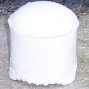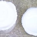 Vintage Milk Glass Covered Jar with Milk Glass Lid. Shell Design at bottom edge. Jar is 3 1/4" across and 3" high. Good condition, chip on edge inside, hairline cracks at top of lid.