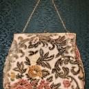 Vintage Purse Tapestry Chenille Beige/MC Florals/Vines 1950s