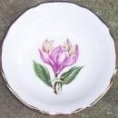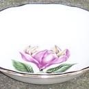 Vintage Sabin China Berry Bowl with Large Pink Tropical Flower and Gold Trim. Berry Bowl is 5" Across and 1 1/2" high. Good condition, glaze does have some crazing.