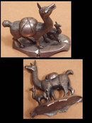 This is a vintage persian sterling mama llama and baby llama statue that measures 2 1/2" tall and 2" long. THis is in great condition and has good weight to it. This is a footed statue so they stand on their own.