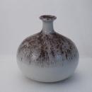 VINTAGE STUDIO BULBOUS LARGE WEED POT VASE GRAY WITH PLUM SPECKLES. It marked on the bottom with a "Z". The glaze has a texture and the speckled area has more of a pronounced tesxture. Meaurs 6" tall and abuot 5.5" wide at the widest part. It is heavy and I think that it is stoneware. The condition is excellent.