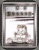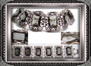 f you want something to add to your collection of really knock em dead pieces then take a look at this HUGE open back set with the largest glass stones I have seen in jewelry in a long time. The bracelet is a whopping 1 1/2 WIDE ( 7 1/2 long) and the earrings are the same. The silver filigree work around the settings is very victorian and the clasp is that of a bookchain set. The stones are REMARKABLE and the set is marked PATd pend In GREAT condition this is really well made.Vintage and antique items are not mint nor are they perfect. Sold as is and as found (used and vintage) Since this is Irreplaceable there can be no returns on this sale.. Please use photos to make your decisions. Remember that old glue and hot post offices may cause some stones in vintage pieces to loosen in shipping.