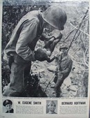 War Photographers Life Magazine Article 1945 This article appeared November 5, 1945. It is a salute by Life Magazine to its' photographers that covered the war. There are 16 pages of black and white pictures with brief articles about the war. They state it is a remarkable documentation of World War II.Two of the photographers pictured are W Eugene Smith and Bernard Hoffman. Great pictures !! In mint condition. Photo is taken through plastic and may show wrinkles or crookedness that is not in the pictures This magazine tear sheet measures 10 1/4"" wide by 14"" tall.