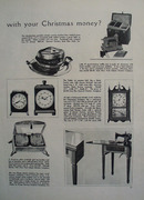 What to Buy With Christmas Money Ad 1933 this is a January 1933 advertisement. It is a nice, two page, black and white ad. Ad gives a number of suggestions of items to buy with your Christmas money. such as, Chromium toasterfor 4.95 from N Y Edison Company. Hall china urn percolator for 27.50 from Westinghouse. Fibrationless portable electric sewing machine from GE for 89.50 Two pages of ideas. In mint condition. Photo is taken through plastic and may show wrinkles or crookedness that is not in the ad. This magazine tear sheet measures 9 1/4 inch wide by 12 3/4 inches tall.