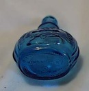 Wheaton Jenny Lind commemorative mini bottle. Beautiful blue color Marked Wheaton NJ on the bottom & The sweedish nightingale on the back with a picture of Miss lind on the front. I believe this to be one of the little commemorative bottles they made in the 1950-60 era. Very pretty blue, no chips et, but has a little water stain on the inside & I don't quite know how to clean it out with such a tiny hole, if fluid is in it, it doesn't show. 3 1/4" x 2"