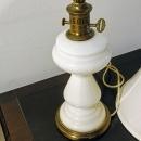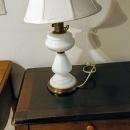 White Glass or Milk Glass Table Lamp with Shade, Vintage