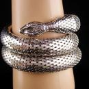 Whiting & Davis Snake Bracelet - Large silver 3 coils - Vintage serpent wrap - Cleopatra's delight - Wide mesh coils - signed jewelry