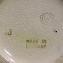 German beer stein decorated with orange luster trim, multicolored incised designs. Depicts a zither player and his romantic interest. Marked "Made in Germany"/"18" and the mark for Wick Works AG of Grenzhausen. Circa mid-1900's stoneware. Holds .5 liter, 6.75"h, no lid. Rim has a few repaired chips, glaze crazed overall. Sold as is. Inglenook Antiques...Established 1989.