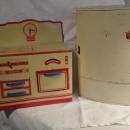 Circa 1940s 50s _ GENERAL company_ TIN TOY STOVE Size 12" Tallest part x 11" Wide x 6" Depth_Left Drawer does Open and close with ease and Right Oven Door Opens and closes with ease... Low PRICE $50.00