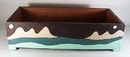 Wood Burned Planter Box, This is a complete wood burned box with carved design and then hand painted. It is made from a old dresser drawer and small 1 inch legs attatched. Two sides show scenery, folk art with mountains and stream and two ens show flying duck. This would make a nice book box, towels or linen box, ect. It was made as a planter, to be lined and filled with a floral arrangement. Many hours went into the design and decoration of this box. Shipping is 4.50 if in the USA. 10 1/2 inch wide x 13 1/2 inch long x 5 1/2 inches deep. Excellent condition, New, no artist signature