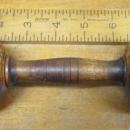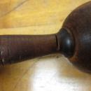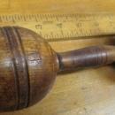 This is a nice antique exersize dumbbell that weighes .5 pounds on the scale. It's about 8" long and 2.5" diameter and has a nice old patina on it. One saw cut type mark on the smaller handle section, but still very strong and useable. Very nicely turned, some small dings and scratches, very solid hardwood.