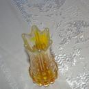 Yellow Clear with Moonglow Crest Ruffle Hobnail Stretch Glass Vase , Japan